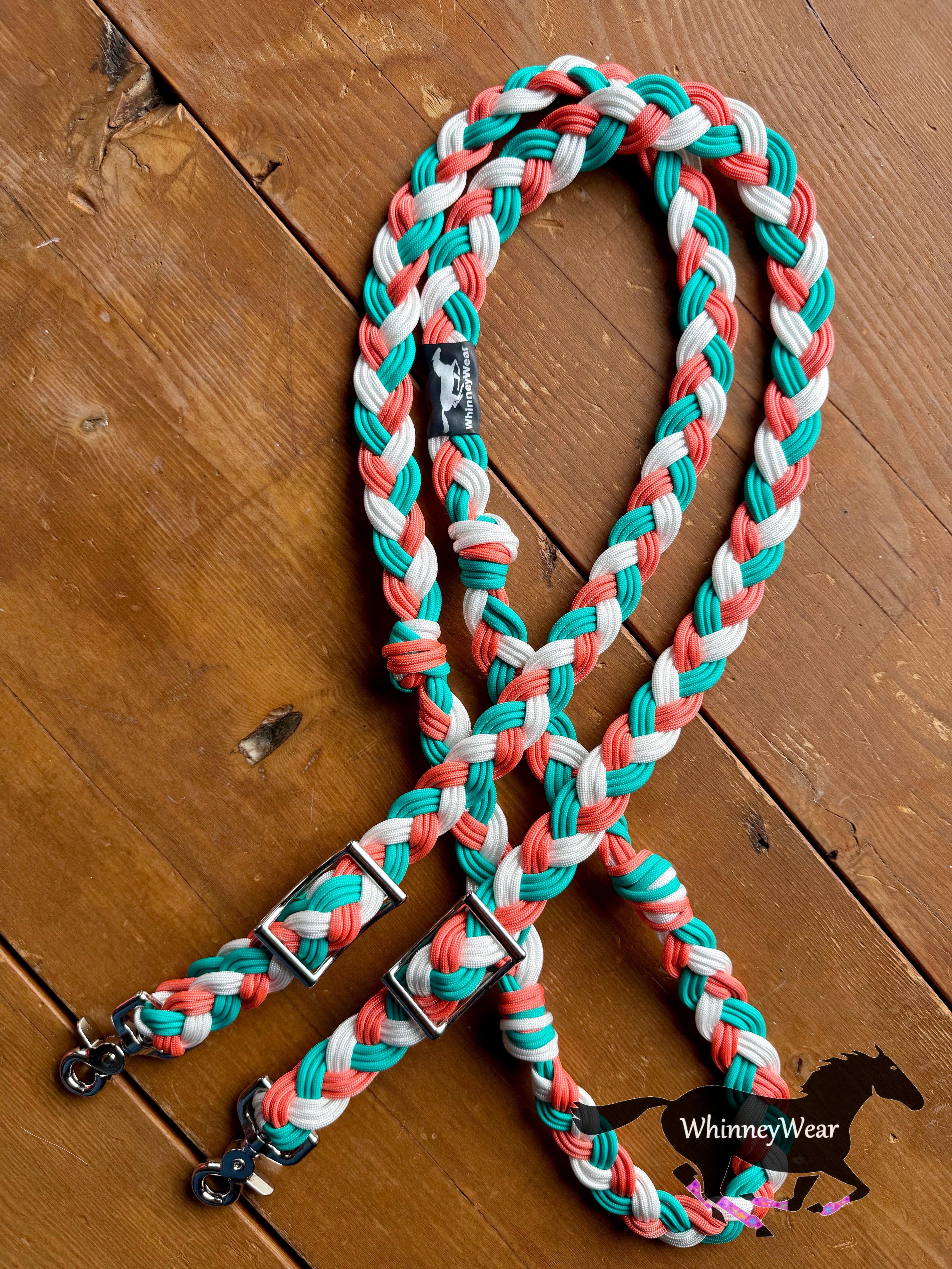 8ft Coral & Aqua Braided Reins