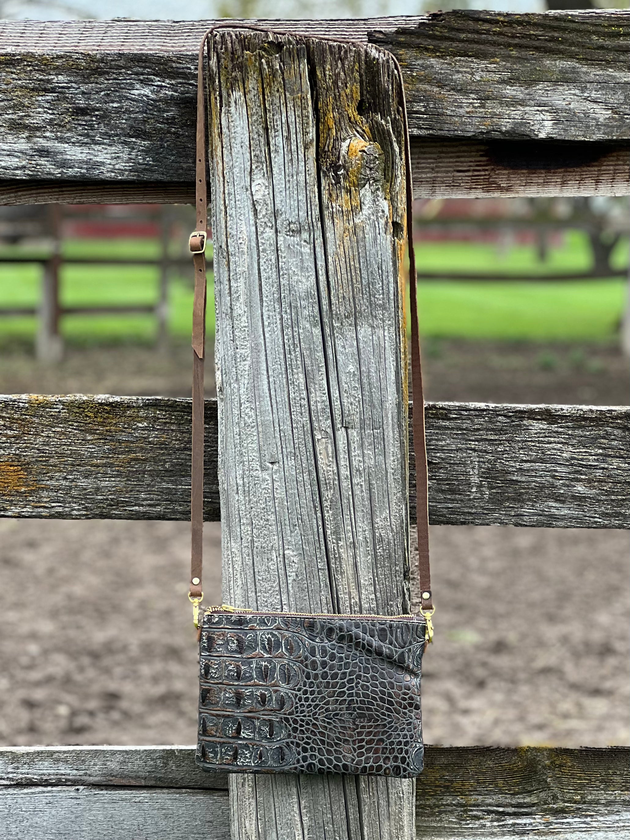 “Lauren” Walnut Croc Purse