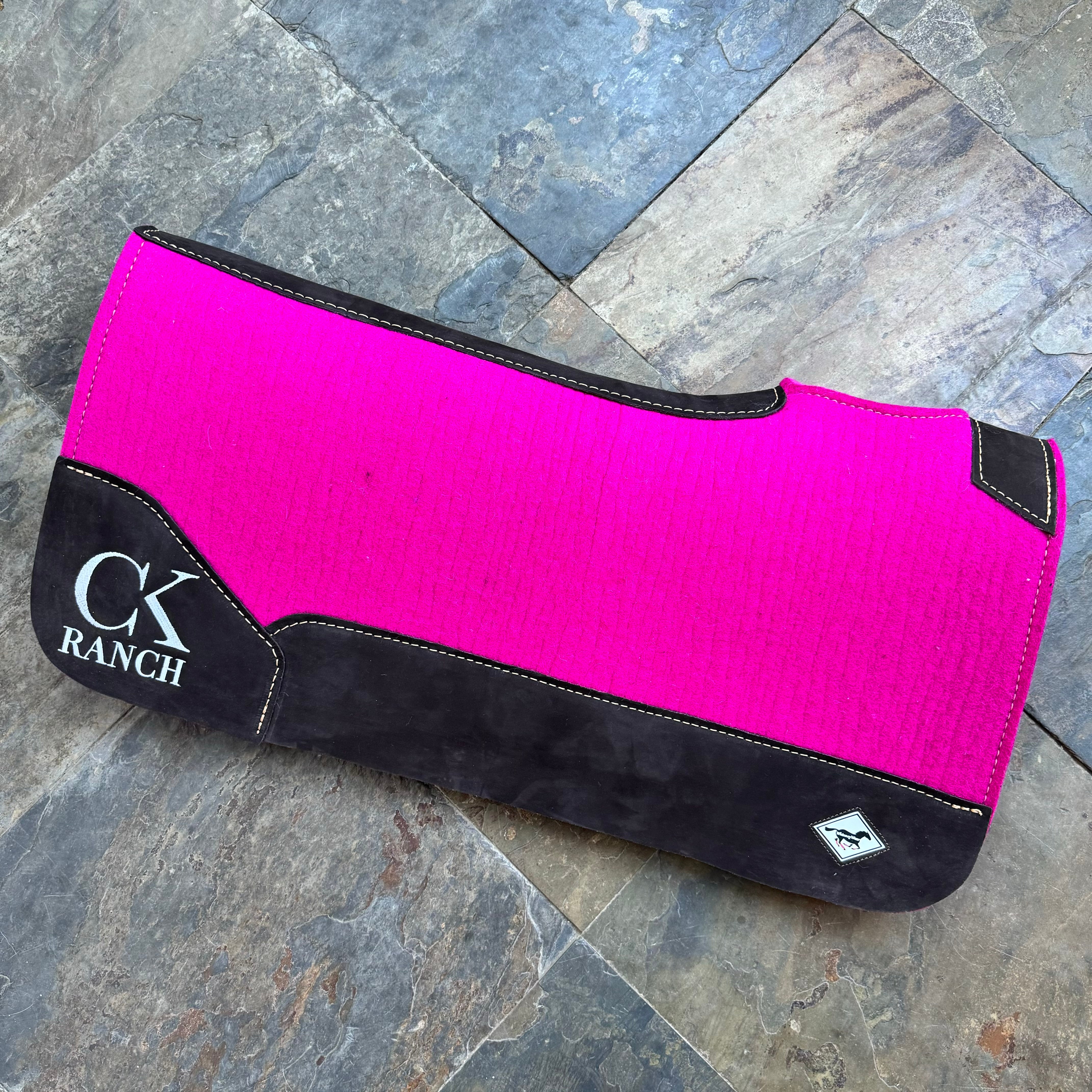 These saddle pads come in 2 HORSE sizes (30x30) or (30x28) and 2 pony sizes (24x24) or (26x26) & 3/4" thick without including the faux sheepskin underlining (optional) Contoured design & leather wear leathers