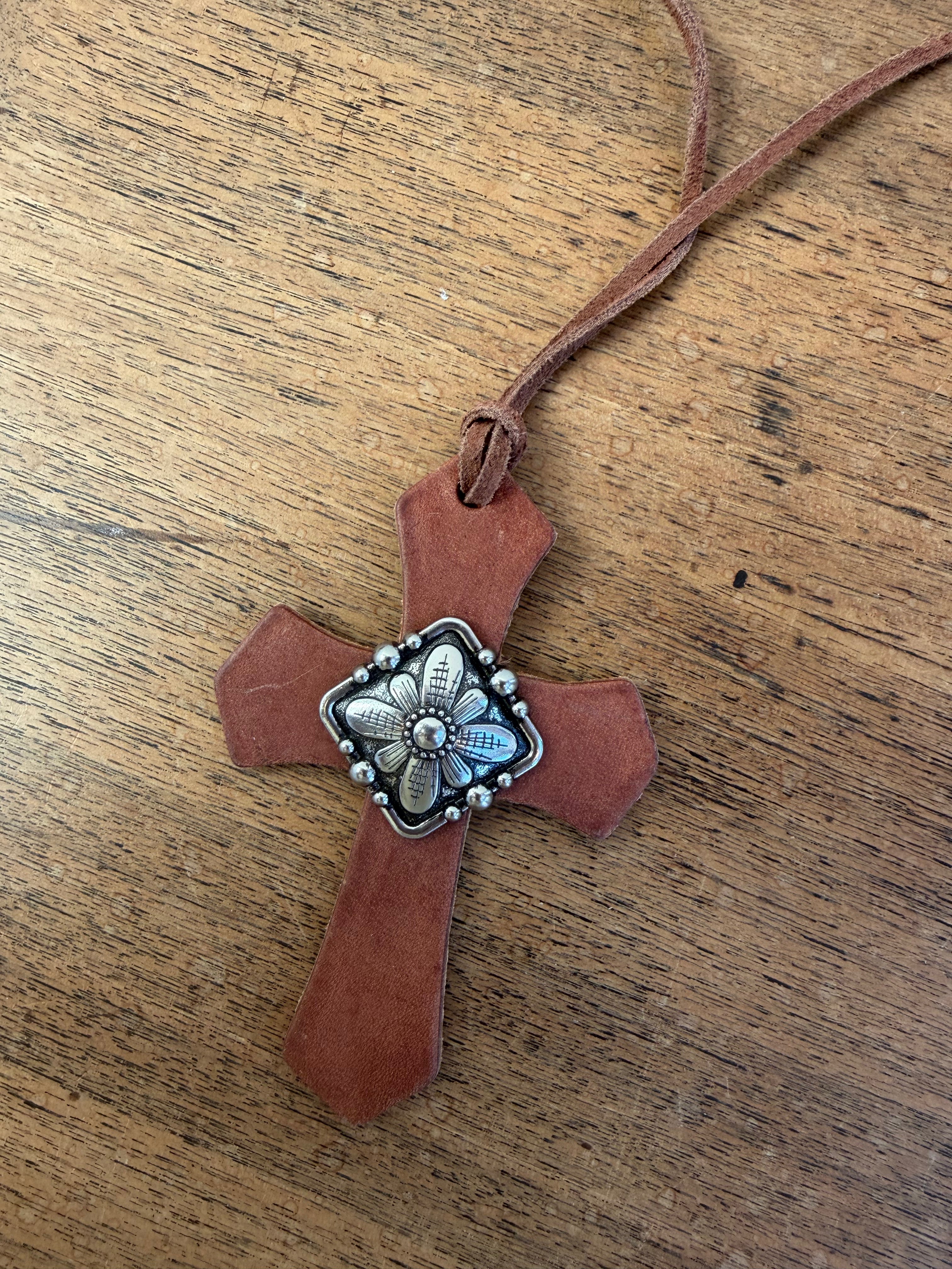 Silver Floral Saddle Cross