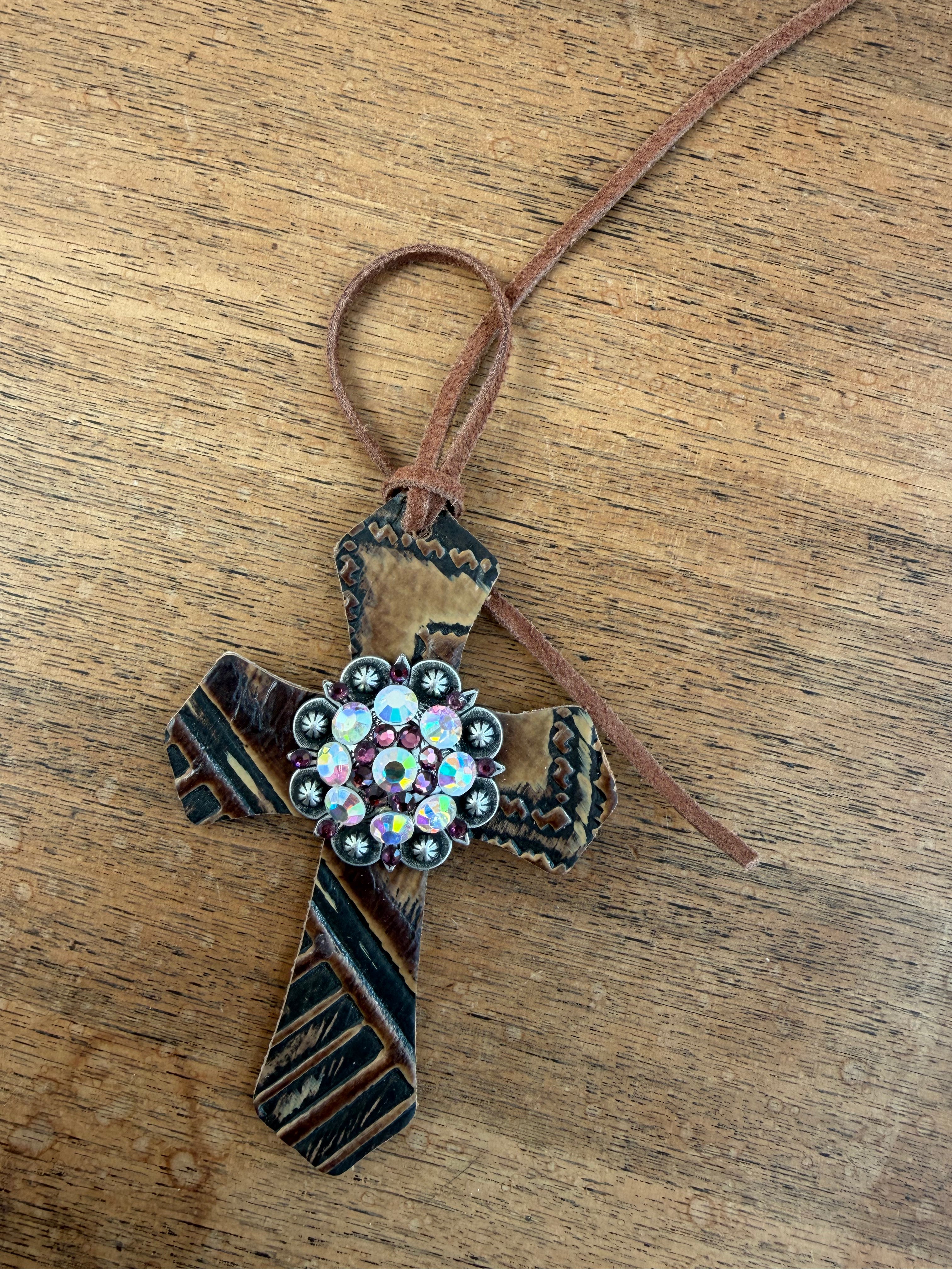 Pink & Brown Bling Saddle Cross