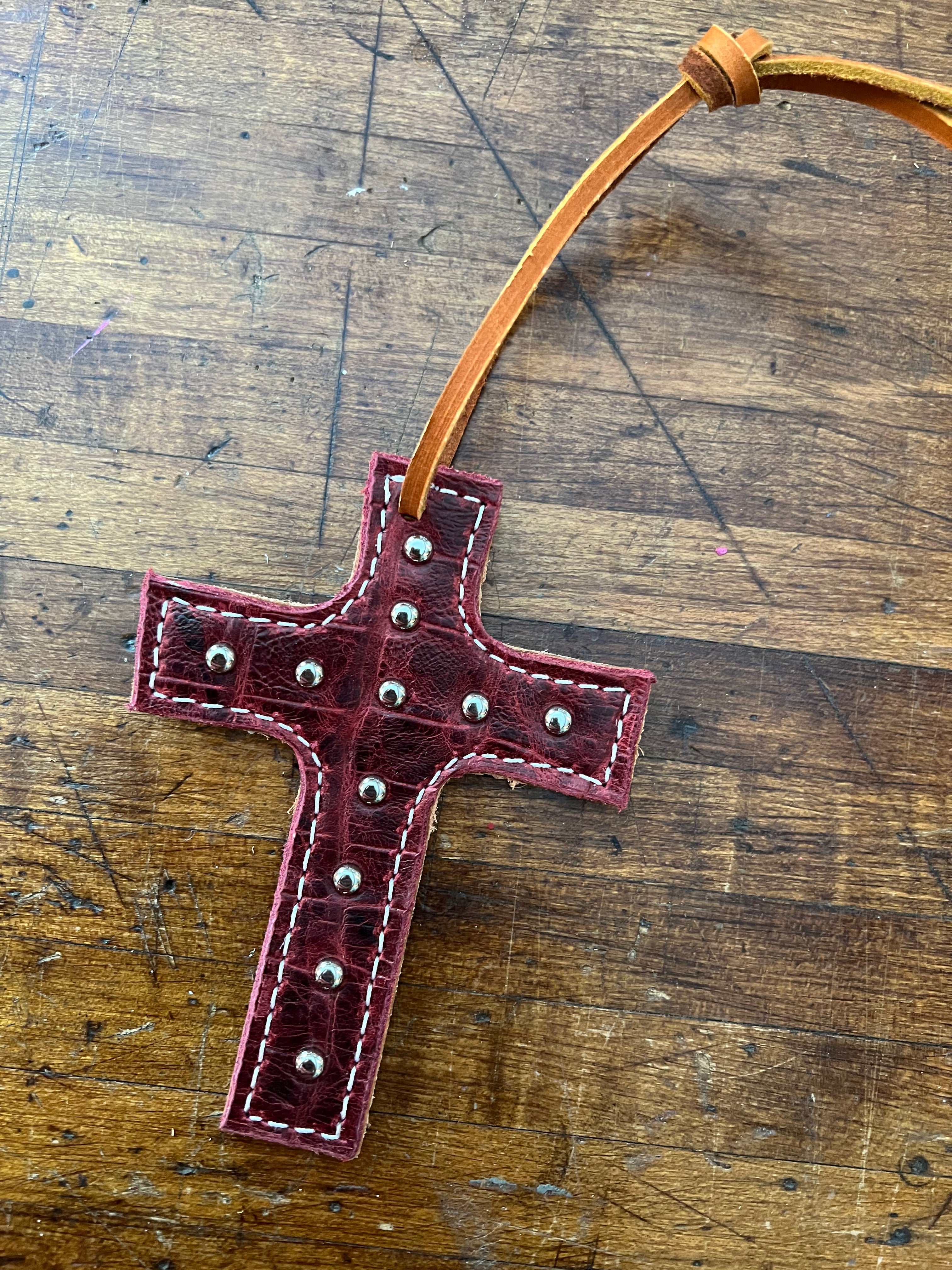 Burgundy Croc Saddle Cross