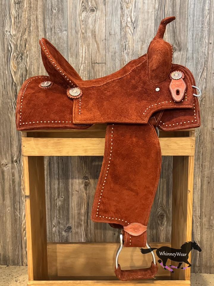 WhinneyWear strives to make sure our saddles are the PERFECT fit for your horse which is why we keep limited stock of ready to ship saddles & focus more on custom saddles - ensuring you get the correct gullet, bar angle and style built that you need for your horse :) We recommend working with a professional saddle fitter to help you measure what your horse will need.
