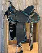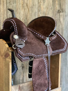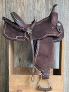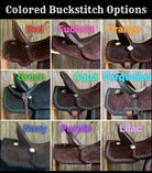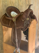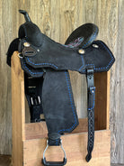 All saddles are made with a wood & fiberglass mixture tree with your choice of gullet size, 5" cantle and your choice of seat size & style. Saddles will weigh approximately 17 pounds once finished.
