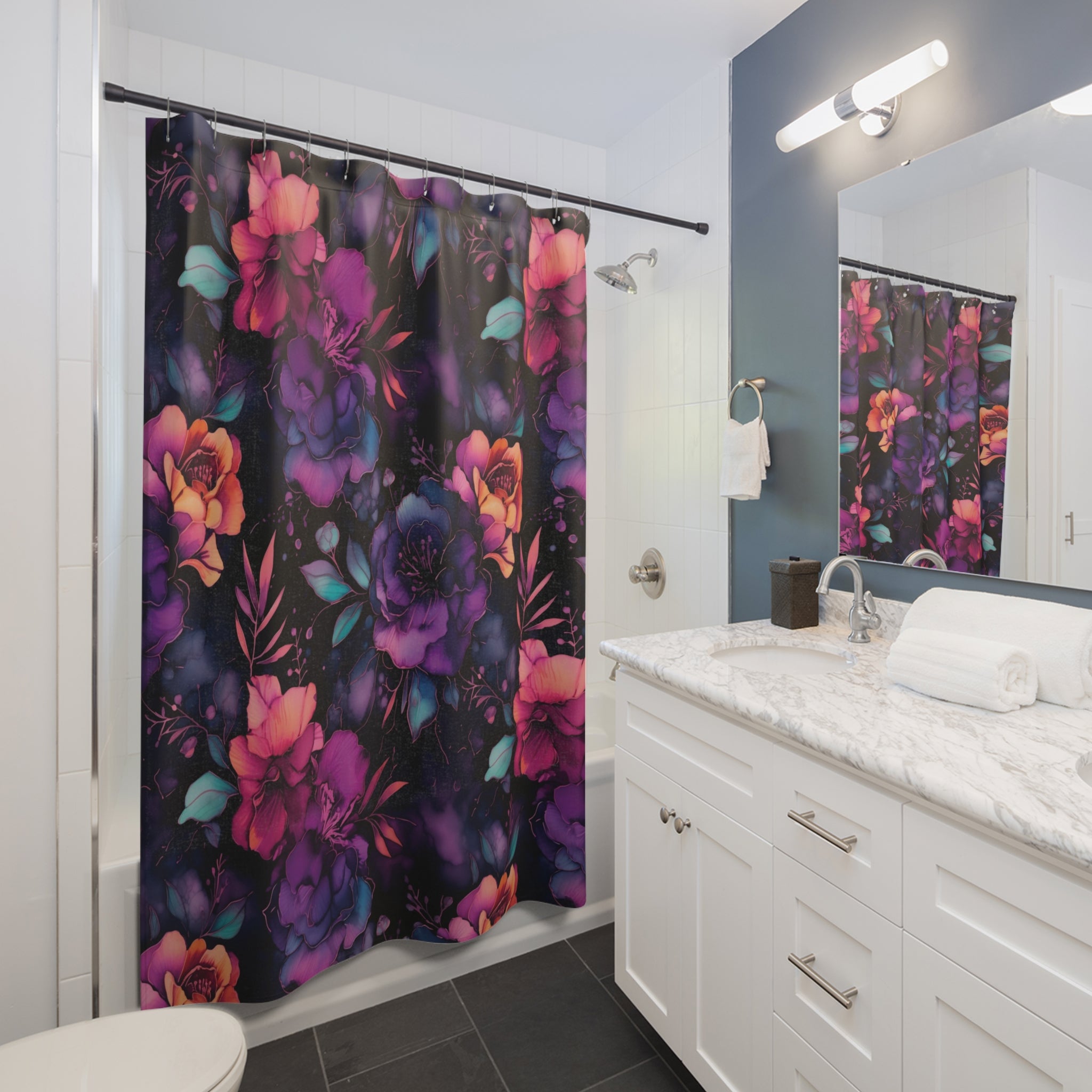 Midnight Bloom Shower Curtain