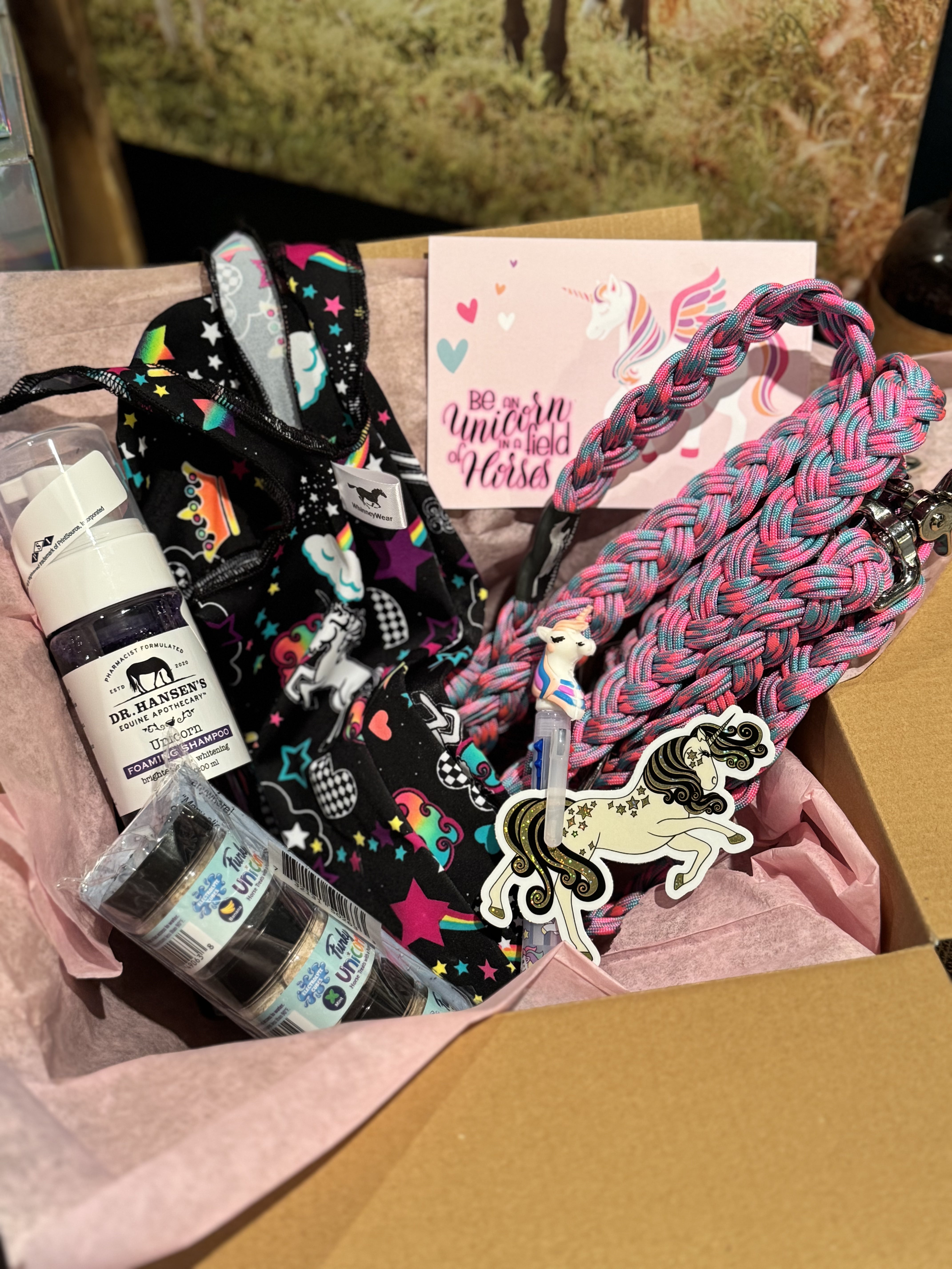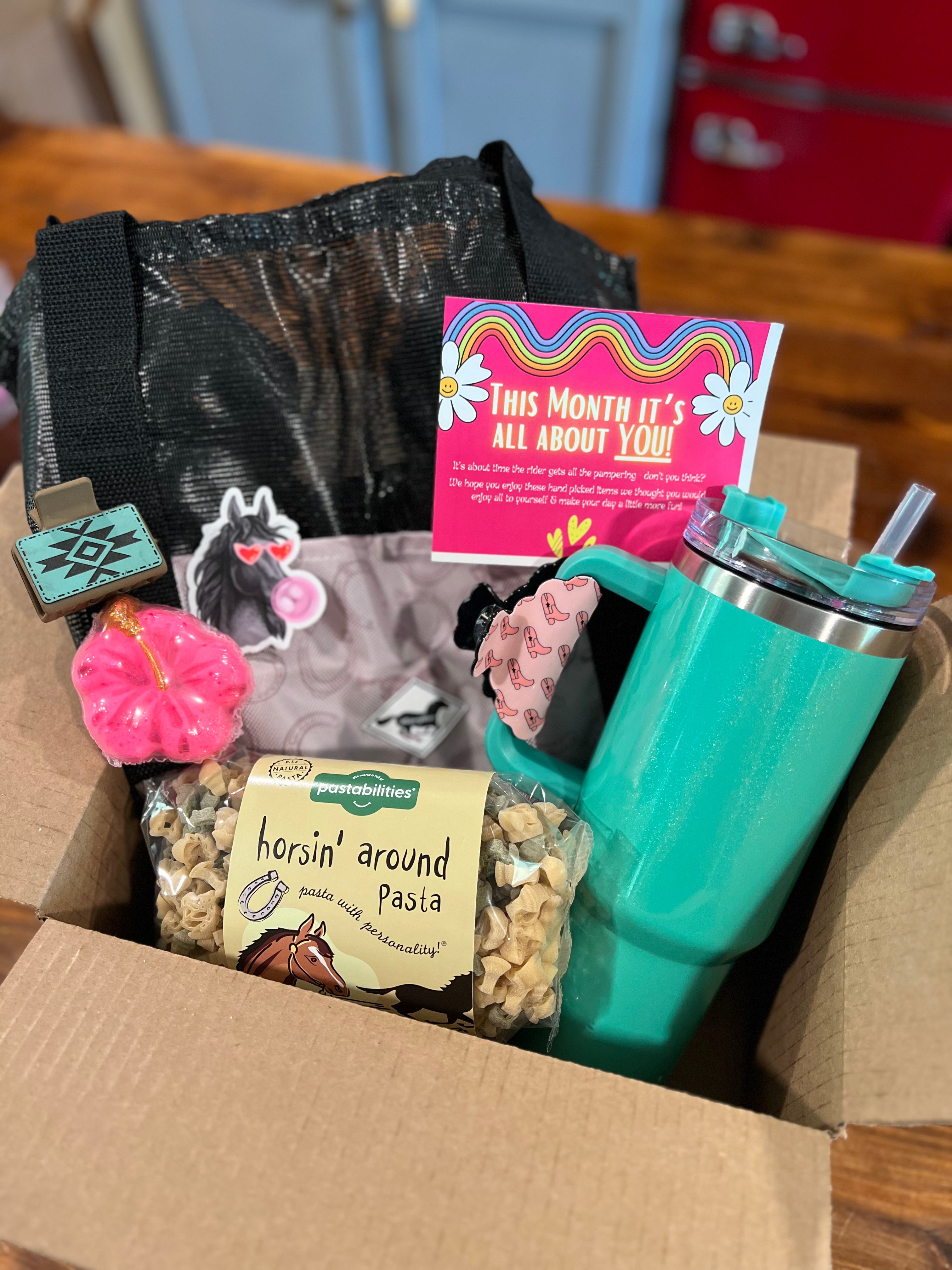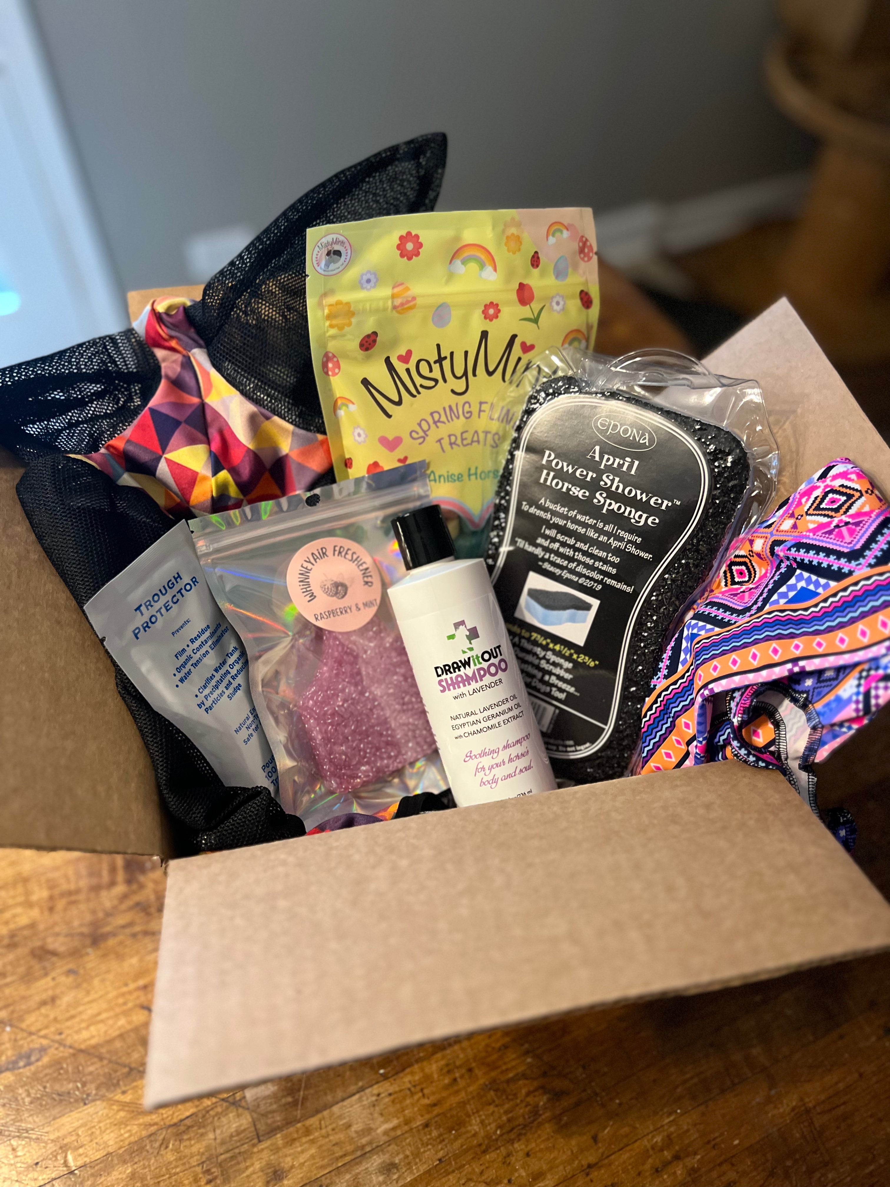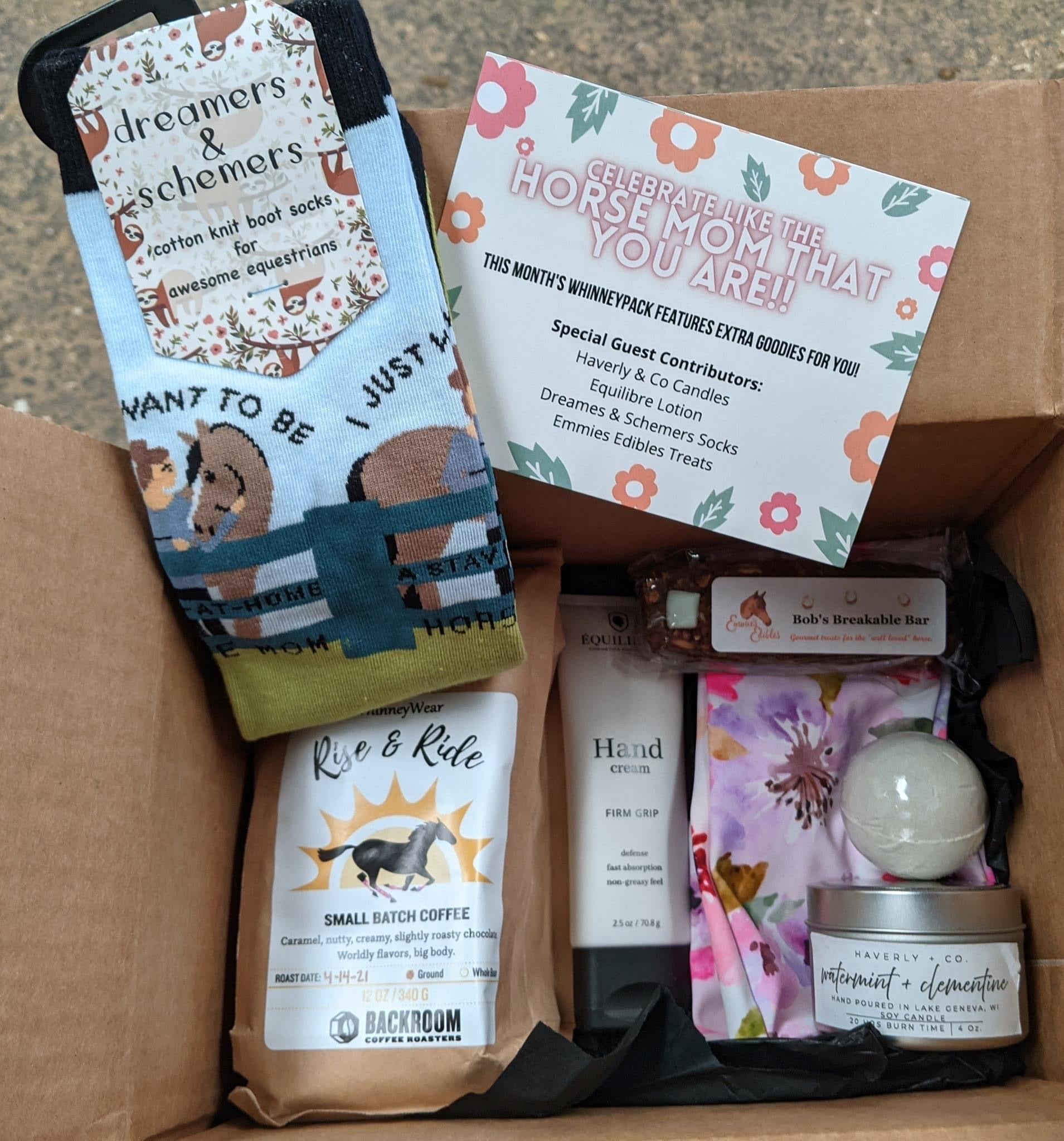 Packs will include items like an air freshener, tailbag, pack of horse treats & a few surprise small items in addition to one special edition item such as a nylon halter, pommel pack, braided reins, or bell boots which will vary each shipment & will be exclusive to only WhinneyPack subscribers.