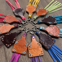 Rep the WhinneyBrand on your keys, rear view mirror or where ever else you get creative this this cool leather ear tag with Swarovski rimsets & leather fringe