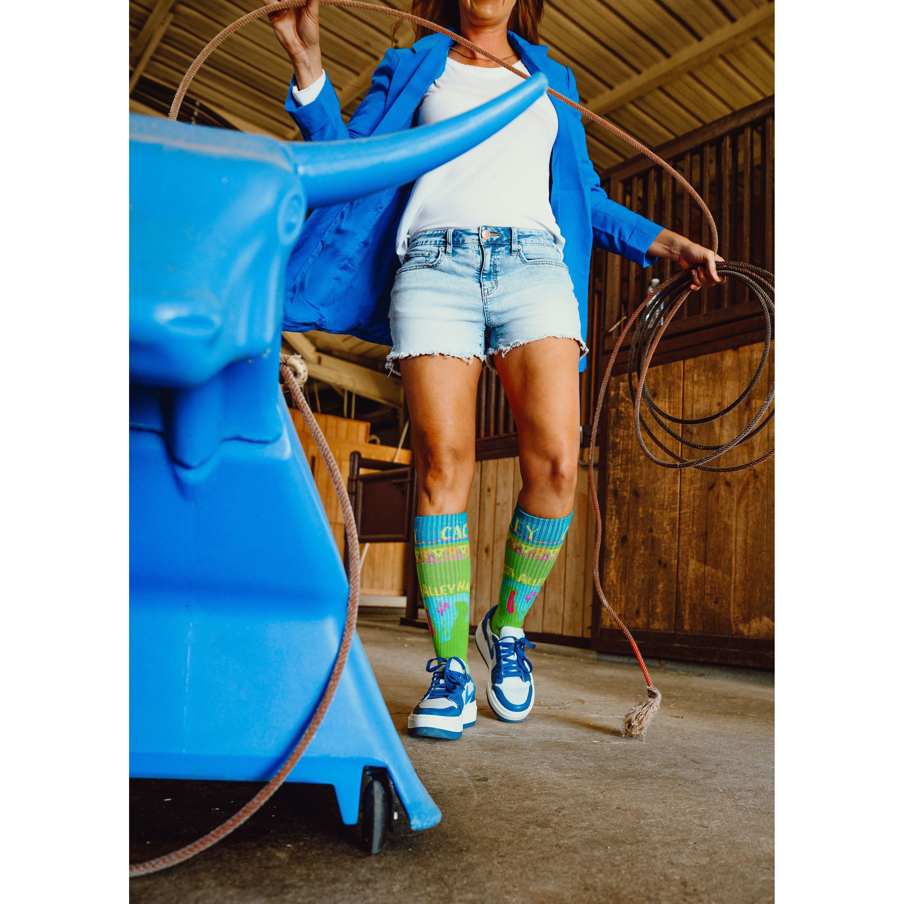 Under the creative vision of head cowgirl Lorinda Van Newkirk, Lucky Chuck® Performance Socks deliver on both style and functionality. These riding essentials are tall enough to protect your calves, stay up all day, and never cut off circulation. Plus, they soften with every wash without wearing out—giving you even more chances to rock your lucky socks every day.