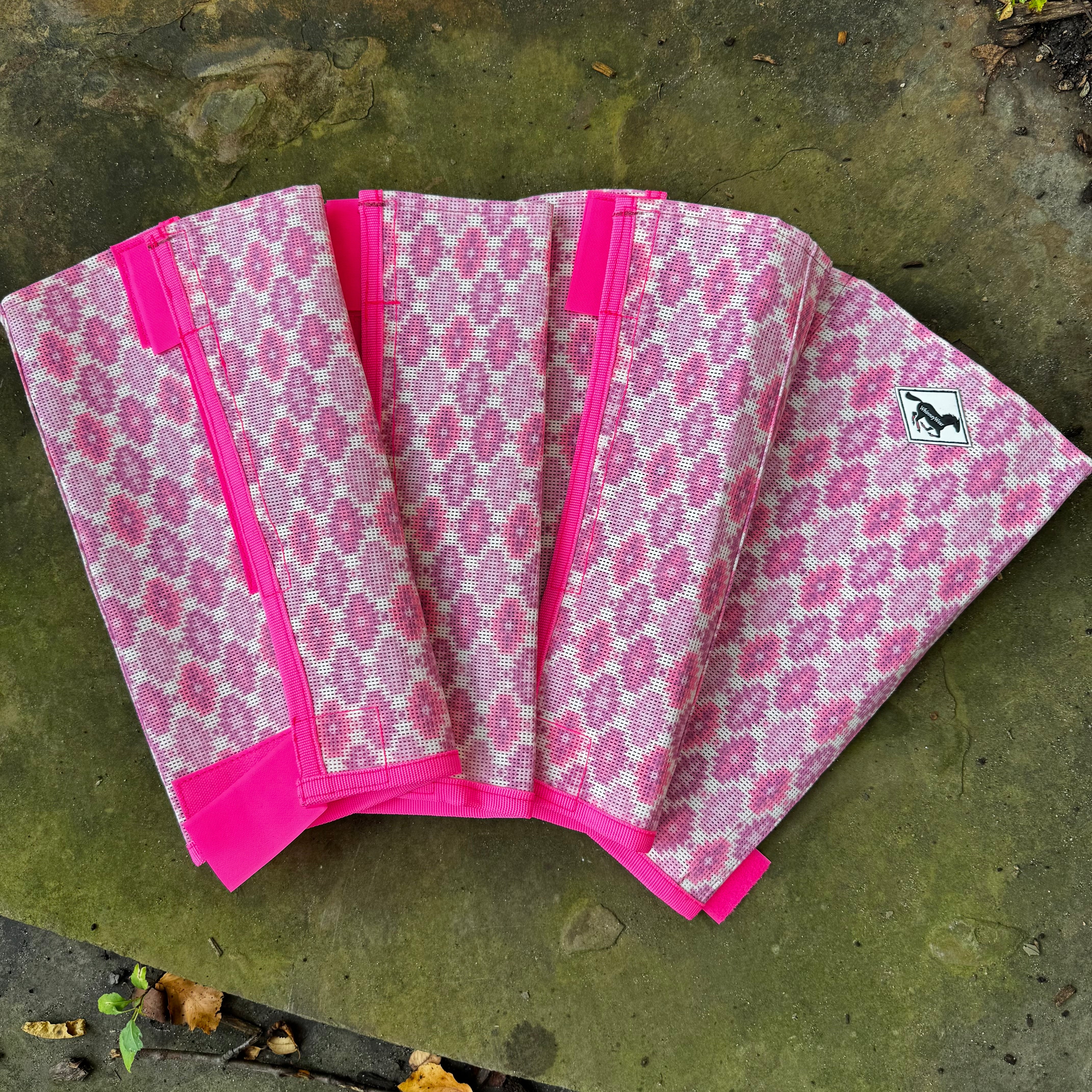 Keep your horse comfy and stylish with this set of 4 new Buzz Off Fly boots! Crafted from durable, breathable plastic mesh, they flex with every step without blocking movement or blood flow. These fly boots are designed to sit above the hoof, secured by strong colored velcro & reinforced with sturdy nylon seams for extra durability & no sagging