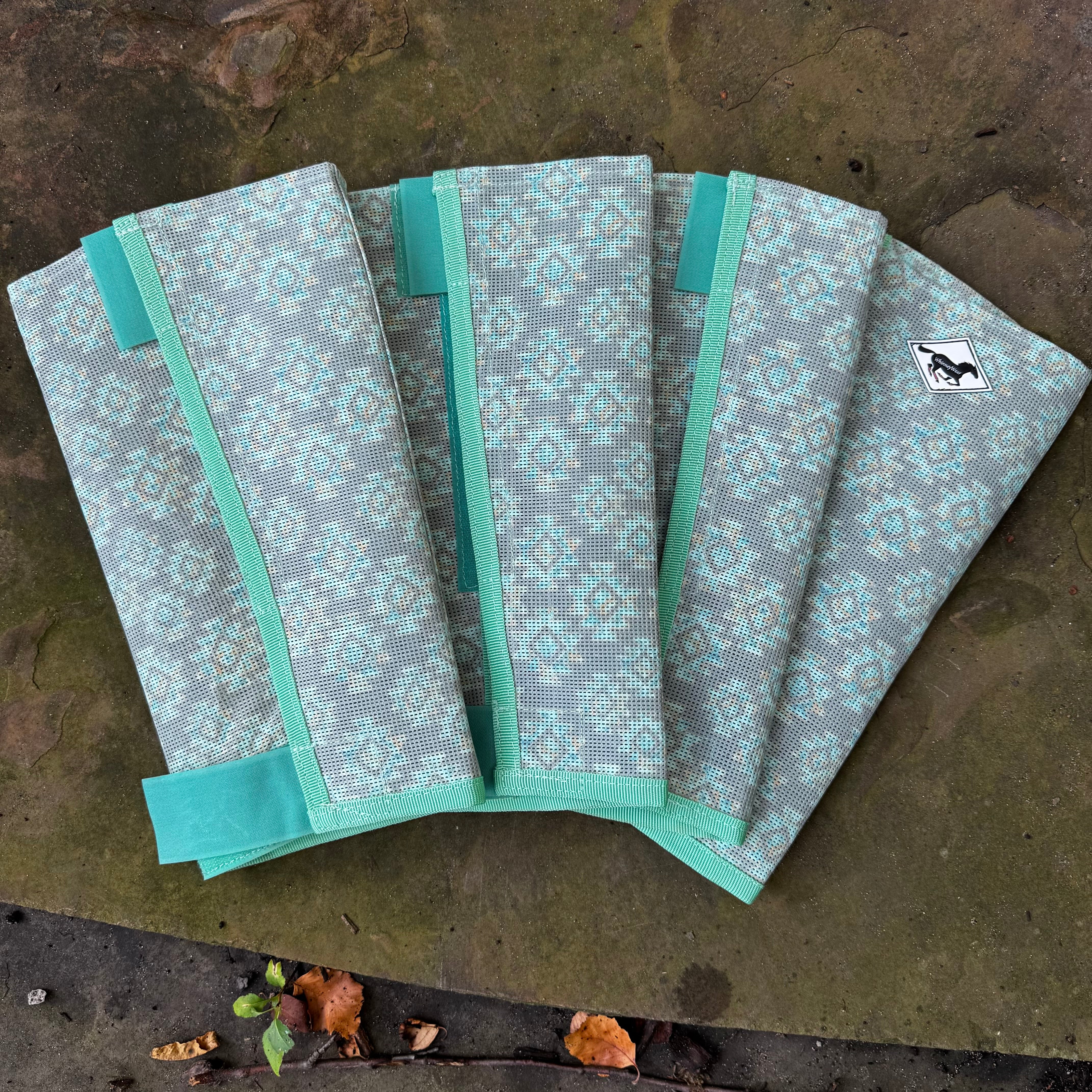 Keep your horse comfy and stylish with this set of 4 new Buzz Off Fly boots! Crafted from durable, breathable plastic mesh, they flex with every step without blocking movement or blood flow. These fly boots are designed to sit above the hoof, secured by strong colored velcro & reinforced with sturdy nylon seams for extra durability & no sagging