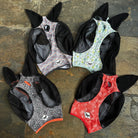 Your horse should be fly free & fashionable! These fly masks are AVERAGE horse size - made with stretchy & high quality lycra material & mesh over the eyes. Forelock hole & stretchy binding trim.
