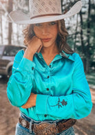 Aqua Satin Rodeo Shirt
